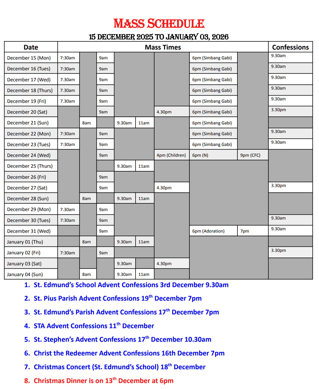 Join us next Sunday and see how our community comes together to praise. No matter what your present or past status in the Catholic Church; No matter what your current family or marital situation; No matter what your personal history, age, background, race, or colour; You are invited, welcomed, accepted, and loved at St. Edmund’s Roman Catholic Church.